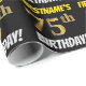 Este design de papel de empacotamento apresenta uma mensagem como "FIRSTNAME'S 75th BIRTHDAY!", com o "75º" a ter uma aparência falsa/imitada de cor dourada, e com o nome e "BIRTHDAY" numa fonte divertida e ousada. O nome pode ser personalizado e o fundo é preto colorido. Um papel de embrulho como este poderia talvez ser usado no embrulho de presentes de aniversário que são dados a alguém em comemoração de seus setenta e cinco anos. [~Z0000203]
