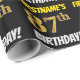 Este design de papel de empacotamento apresenta uma mensagem como "FIRSTNAME'S 87th BIRTHDAY!", com o "87º" a ter uma aparência de cor falsa/imitada em forma de ouro, e com o nome e "BIRTHDAY" numa fonte divertida e ousada. O nome pode ser personalizado e o fundo é preto colorido. Um papel de embrulho como este poderia talvez ser usado no embrulho de presentes de aniversário que são dados a alguém em comemoração do seu oitenta e sétimo aniversário. [~Z0000203]