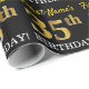Este design de papel de embrulho apresenta uma mensagem como "First-Name’s 35th BIRTHDAY!", com o "35º" a ter uma aparência falsa/de cor dourada. O nome pode ser personalizado e o fundo é preto colorido. Talvez possa ser utilizado quando se dá presentes para o trigésimo quinto aniversário de alguém. [~Z0000177]