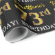 Este design de papel de embrulho apresenta uma mensagem como "FirstName’s 73rd BIRTHDAY!", com o "73º" a ter uma aparência falsa/de cor dourada. O nome pode ser personalizado e o fundo é preto colorido. Talvez possa ser utilizado quando se dá presentes para o setenta e terceiro aniversário de alguém. [~Z0000177]