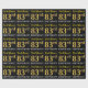 Este design de papel de embrulho apresenta uma mensagem como "First-Name’s 83rd BIRTHDAY!", com o "83º" a ter uma aparência de cor falsa/imitada em ouro. O nome pode ser personalizado e o fundo é preto colorido. Talvez possa ser utilizado quando se dá presentes para o oitenta e terceiro aniversário de alguém. [~Z0000177]