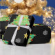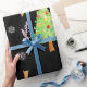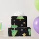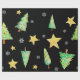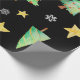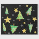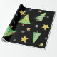 Papel de presente muito incomum e único para seus presentes muito especiais! Árvores de Natal, flocos de neve e estrelas dançam em um fundo preto. Por Scarebaby Design.