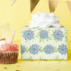 Este padrão floral Primavera que envolve rolos de papel apresenta flores azuis pastéis com folhas verdes de melada e pontos minúsculos.