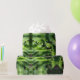 Uma imagem aproximada de samambaias primavera verdes iluminadas por luz aplaudida através da cobertura da floresta.