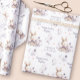 Papel de embrulho personalizado, de Páscoa bonita, com um coelhinho fofo em tons roxos macios, 2 textos diferentes e flores, todos em fundo branco. Personalize facilmente o texto. - Kate Eden Art
