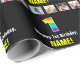 Este design de papel de embrulho alegre e divertido, com tema de aniversário, apresenta um grande número "1", tendo um vibrante espectro multicolorido do arco-íris inspirado num padrão de gradiente, juntamente com a mensagem "primeiro aniversario feliz" e um nome de destinatário personalizado. Há também fotos que podem ser personalizadas, talvez com fotos do receptor, da família e dos amigos do destinatário e/ou do(s) remetente(s) do presente. O papel embrulhado temático de aniversário em negros como este pode ser uma maneira divertida de embrulhar um presente ou presente para celebrar o primeiro aniversário de alguém. (Fotografia © Storytree Studios, Stanford, CA.) [~Z0000670]