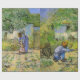 Primeiros Passos (após Millet) de Vincent van Gogh é uma pintura vintage de arte fina pós-impressionista retratando uma cena da vida diária com um agricultor camponês e sua esposa (mãe e pai) com seu filho dando os primeiros passos. A família está trabalhando na horta com sua casa, uma cabana, ao fundo.
