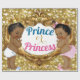 Príncipe Africano ou Princesa Glitter Gift Wrap Adorável Príncipe Africano vestindo uma coroa de ouro e uma fralda branca com pantufas azuis ao lado de uma bela princesa Africana vestindo uma fralda cor-de-rosa, rochada, com coroa de ouro e chinelos cor-de-rosa num quadro de ouro elegante sobre um fundo reluzente de ouro