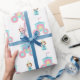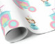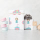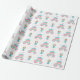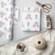 Papel simples e adorável de embrulho em cores azuis e cor-de-rosa com um padrão de princesa e sua carruagem. Excelente para ofertas de festas de aniversário e chás de fraldas. Ilustrada e projetada por Patricia Alvarez.