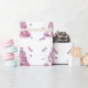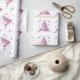 Um design de presente divertido com um bolo de castelo rosa bonito com torres e bandeiras acentuadas por varas mágicas coloridas e algumas borboletas floreantes. Um papel de embrulho de conto de fadas para melhorar a estética do partido princesa.
