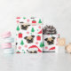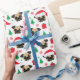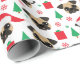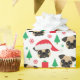 Papel de envolvimento da raça do cão do pug do Natal com árvores, presentes, flocos de neve, chapéus do papai noel e pugs!