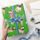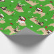 Papel de envolvimento verde dos Pugs do Natal, cães bonitos do Pug em equipamentos festivos do feriado.