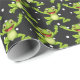 Sapos verdes felizes pulando em padrão de bolinhas branca e fundo preto.