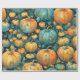 "Encantado Pumpkin Patch" é um design de papel de embrulho mágico que o transporta para um reino místico de celebração do outono. Este padrão cativante apresenta uma densa variedade de abóboras em tons de laranja vibrante e azul místico, cada uma enfeitiçada com padrões de fadas e caprichos que parecem contar suas próprias histórias. As abóboras estão aninhadas entre folhas enroladas e acentos sutis de ouro, melhorando seu encanto e maravilha. As cores profundas e ricas colocadas sobre um fundo sombrio tornam esse design perfeito para presentes de Halloween ou acrescentando um toque extra de encanto a qualquer presente de outono.