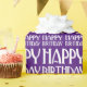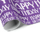 Encerre seus presentes neste Livro de Aniversário Feliz da Arte Púrpura. Ele apresenta uma fonte de deco na moda de arte branca contra um fundo roxo escuro. Este papel clássico de embrulho é um presente divertido para qualquer um.