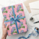 Papel De Presente Purple Folk Art Owls on Pink Background
