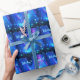 Uma interpretação fractal rosa e azul das Luzes e estrelas do Norte refletida na superfície do mar. O texto do Inuktitut que lê "Kuvianak Innovia" (Feliz Natal), no alfabeto sílabo adotado em Nunavut, também aparece em azul e branco brilhantes. Os Inuit são geralmente chamados de esquimó, mas esse termo é agora desfavorecido, pois é considerado pejorativo. Qanaaq é um povoado na Groenlândia norte.