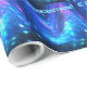 Uma interpretação fractal rosa e azul das Luzes e estrelas do Norte refletida na superfície do mar. O texto "S Rozhdestvom" (Uma saudação de Natal russa) também aparece em azul e branco brilhantes. Qanaaq é um povoado na Groenlândia norte.