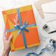Este papel de embrulho tem um design de quadrados e círculos Bauhaus em amarelo e laranja.