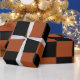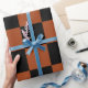 Papel De Presente Quadrados Xadrez Preto e Laranja Plaid Búfalo