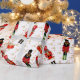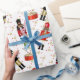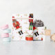 Este adorável presente contém três, muito diferentes, imagens nutcracker preto junto com um tambor, estrelas douradas e pontos vermelhos. Este papel de embrulho é perfeito e festivo para a temporada de férias.