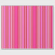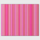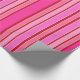 Este papel de embalagem é mostrado em um impressão de listras rosa e vermelha de várias cores.