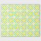 Os anéis de interseção (azul, verde, amarelo) são replicados quatro vezes e os anéis amarelos são intertravados no meio. O motivo resultante é replicado no papel com um fundo amarelo pálido.