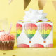 Balão de ar quente com faixas de ziguezague horizontais de vermelho, laranja, amarelo, verde e azul. A imagem é encaixada de modo que cada linha seja deslocada da acima e abaixo.