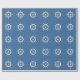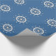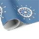 Imagem gráfica da roda do navio em branco sobre fundo azul profundo.