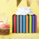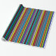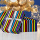 Aniversário presente embrulhe com listras vermelhas, azuis, roxas, verdes, laranja, limão e amarelas.