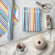 Aniversário presente embrulhe com listras vermelhas, azuis, roxas, verdes, laranja, limão e amarelas.