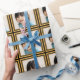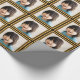 O seu papel personalizado de empacotamento fotográfico com um quadro impresso de aspecto dourado com a sua própria fotografia.