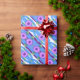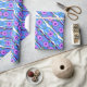 Papel de enrolamento em cor rosa, floral e azul, com fundo roxo, que pode ser mudado para qualquer cor para complementar o seu estilo, papel de embrulho de presente adequado para qualquer ocasião especial.
