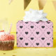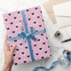 Este papel de embrulho encantador oferece um design sofisticado, mas divertido, perfeito para adicionar um toque de romance a qualquer presente. O padrão apresenta uma borda estruturada em estilo de treliça preta que cria uma série de molduras suaves e arredondadas em um fundo rosa vibrante. No centro de cada moldura, há um coração preto carvão sólido, proporcionando um contraste ousado e moderno com a cor base feminina.