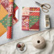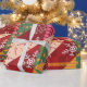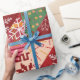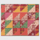 Design de retalhos de impressões de férias. Canetas doces dançantes, ornamentos pendurados, e flocos de neve caídos se juntam em um padrão de colcha alegre e alegre.