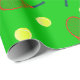 Tema - Tênis. Jogadores de tênis e treinadores adorarão este papel de embrulho colorido, padronizado com raquetes de tênis e bolas de tênis.