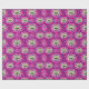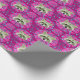Este papel de embrulho apresenta guaxinins de cinza sobre um fundo de flores cor-de-rosa-escuro, abstrato de rosa claro, rochas e estrelas retrorreflectoras.