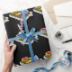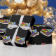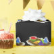 Dispõe-se de um conjunto vibrante de fatias de melancia do arco-íris num conselho de madeira que apresenta formas triangulares e redondas coloridas. As cores contrastantes em relação ao fundo neutro criam uma exibição animada e atraente.