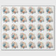 Ramo de noiva de Mums azuis e peônias rosas sobre um fundo branco. Este papel de presente está disponível em todos os tamanhos. Você pode embrulhar presentes pequenos ou grandes, dependendo do tamanho que escolher.