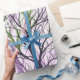 Papel de enrolamento das ramificações de árvores verdes com abstrato violeta.