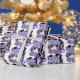 O presente de aniversário é embrulhado com o tema da festa da garota de jogos de anime em roxo e preto.