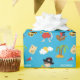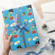 Yo ho ho! Varrer os sete mares com um papel de embrulho de festa de aniversário pirata e divertido para crianças pequenas. O presente tem um padrão de um jovem pirata, um papagaio verde, um navio pirata, uma ilha tropical, um mapa do tesouro, um telescópio, e um cheio de tesouro de moedas de ouro. Adicione o nome do seu filho ao fundo azul para um toque personalizado. O papel de enrolar faz um excelente extra para um presente de aniversário, chá de fraldas, Natal ou outro feriado!
