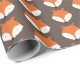 Papel de embrulho de raposa cúbica com um padrão de faces de raposa de desenho animado sobre fundo castanho. Design de Feriado - Feriado - Folha de Raposa | ©Melissa Patton — Artista/Ilustrator