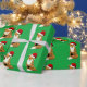 Este belo papel de embrulho apresenta uma raposa sentada quase como um cão e vestindo um chapéu de Papai Noel na cabeça. Esta imagem divertida está sobre um fundo verde e é uma ideia única para o presente de Natal.