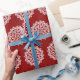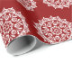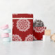 Esta mandala branca senta-se sobre um fundo vermelho escuro. A cor é profunda e quente. Parte da coleção Brosya Mandala.