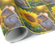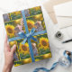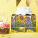 Um rato giro, vestido com um suéter aconchegante, está cheirando um girassol amarelo vibrante em um campo iluminado pelo sol