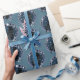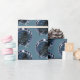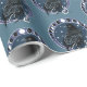 Corvo tribal sentado em um círculo de estrelas e fases luas, desenhado em um estilo part nouveau em um pano de fundo de blues e púrpura.