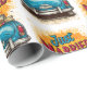 Este rolo vivo de papel de embrulho apresenta uma ilustração ousada de arte pop de um carro convertível vintage visto de trás, decolado no estilo clássico de casamento com flores do outro lado do tronco. O carro é renderizado em contornos densos de preto e cheio de cores brilhantes e saturadas — pensem em vermelho cereja, turquesa, amarelo-sol e cor-de-rosa elétrico — evocando o talento retro dos quadrinhos. Acima do carro, a frase "Recem casados" se estende através do design em letras grandes, estilhaçadas com texturas de meia-tona e cores vibrantes contrastantes para um efeito dramático e celebratório. O padrão repetitivo pop com energia, perfeito para embrulhar presentes de casamento, presentes de festa de solteira ou surpresas de noivado.