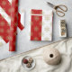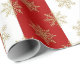 A Colorful Red And White Striped Holiday Wrapping Paper With Golden Snowflakes