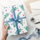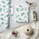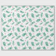 Papel branco festivo de embalagem impresso com um padrão clássico de folhas verdes e bagas vermelhas de cor aquosa. Perfeito para embrulhar presentes de Natal. Boa escolha para um entusiasta do inverno, da floresta e do estilo rústico.